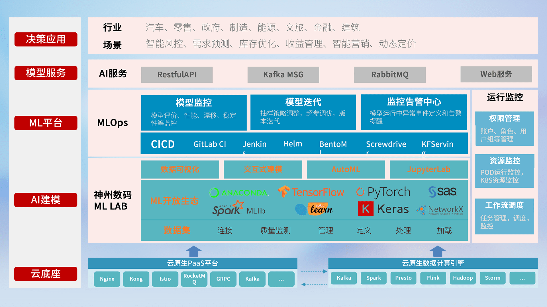 数据+模型双引擎驱动,,,,面向智能服务场景,,,快速灵活利用AI技术,,,支持业务决策,,,助力企业智能化转型破局。。。。